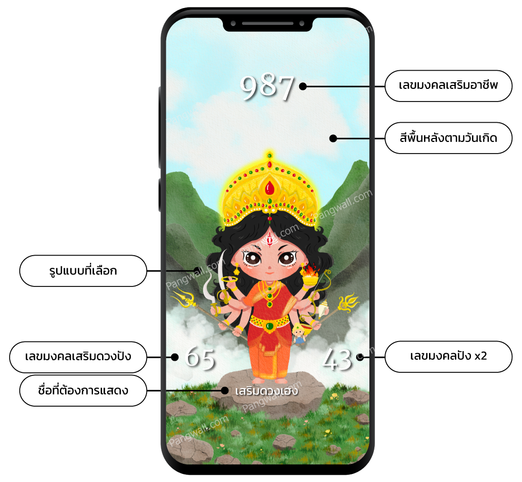 อีกทั้งยังคุ้มครองให้ปราศจากอันตราย ขจัดศัตรูในชีวิต ขจัดความขุ่นมัวในใจหรือนิสัยที่ไม่ดีของเราที่เราอยากจะปรับเปลี่ยน พระแม่กาลีจะช่วยคลายปัญหาแห่งความทุกข์และมอบพลังความสุข และความดีให้แก่ท่าน
